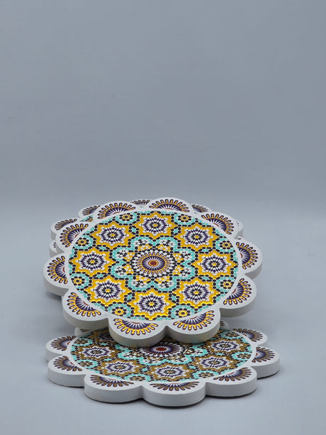 $1499 CADUnit price /UnavailableSet of 6 Moroccan Ceramic Coasters – Geometric Mosaic Design